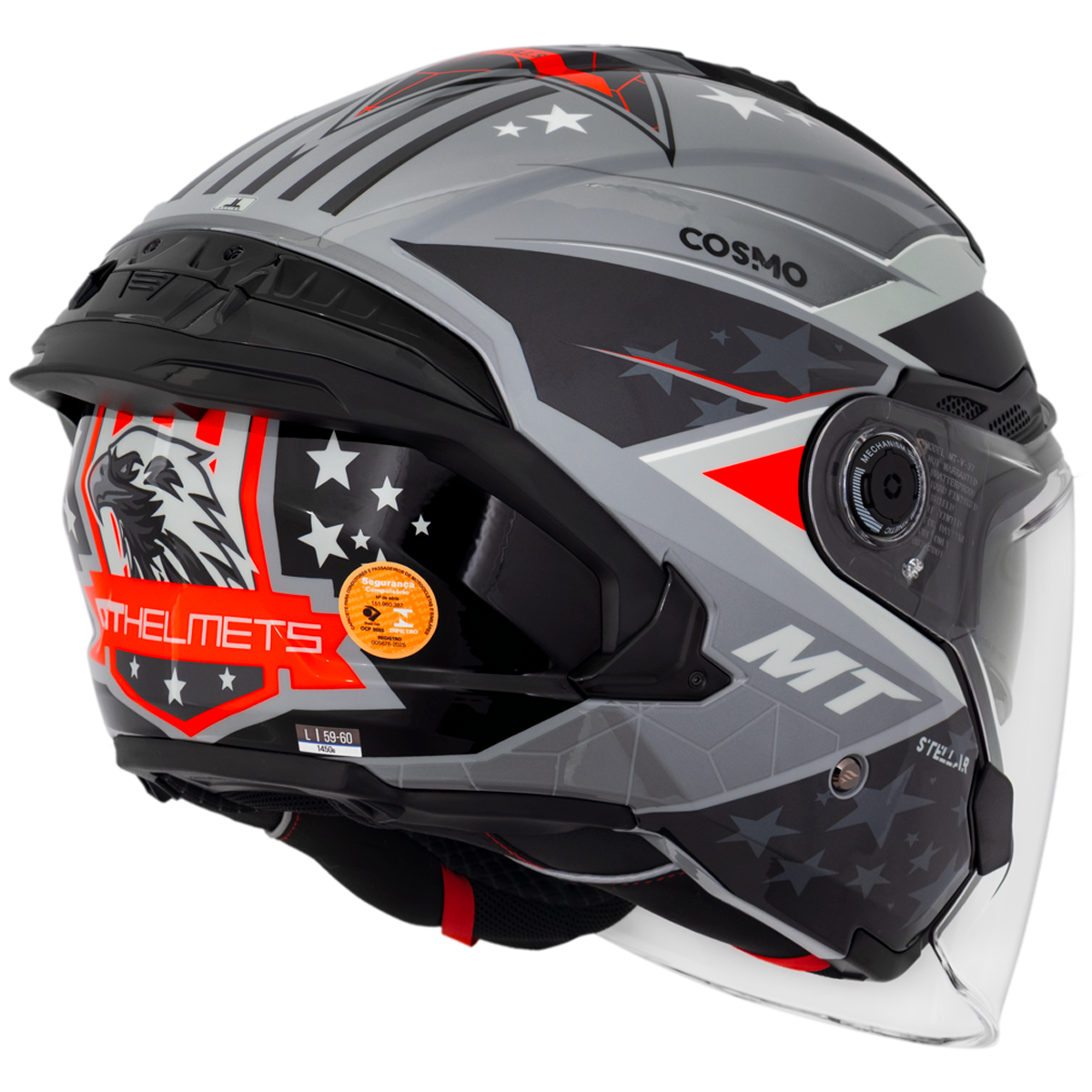 Sempre que o nome do capacete incluir as letras SV, indicará que ele vem com o sistema Sun Visor. O COSMO SV é equipado com essa tecnologia, que oferece um óculos solar interno, ideal para diferentes condições de iluminação. Em dias ensolarados, o Sun Visor poderá ser abaixado para proporcionar uma visão mais clara e melhorar a segurança do piloto, garantindo uma experiência de pilotagem mais confortável e segura.